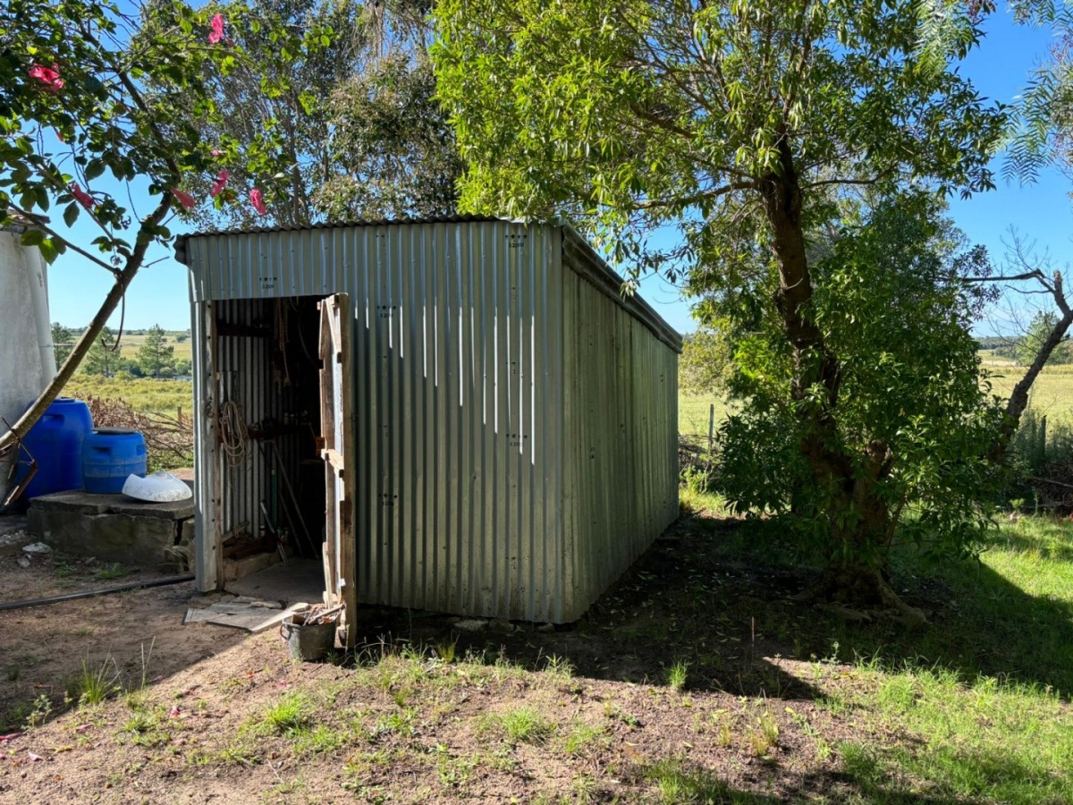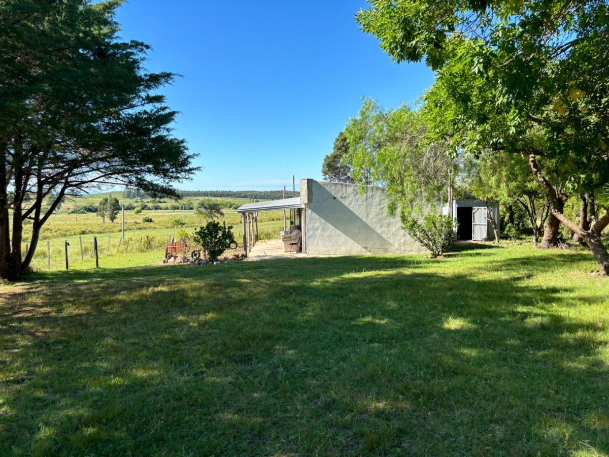 Chacra de 8 ha en Canelones, zona Migues a ~10 km. Alambrada; casa principal 2D/baño/cocina-comedor; segunda casa 1D/baño/cocina-comedor; galpones chico y grande; pozo con bomba; tajamar; buena tierra. Lugar alto.