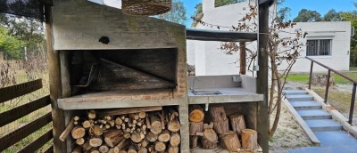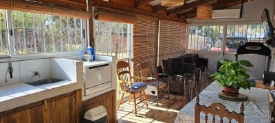 Casa 2. 1 dormitorio con aire acond. Estufa a leña, baño completo. Cochera. Galpón, piscina climatizada con bomba de calor. Precio x todo 229000 dólares.