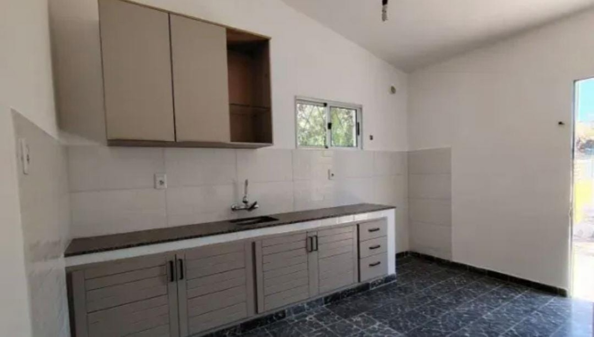 Un baño completo hecho a nuevo. Cocina reciclada con placares sobre y bajo mesada, salida a patio trasero.